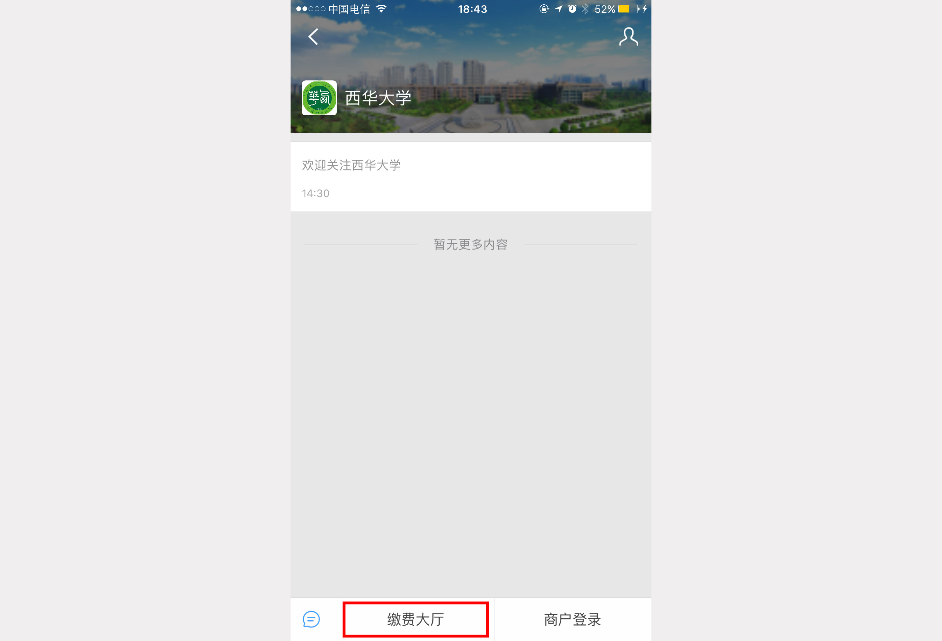 1.4进入生活号主界面,点击菜单进入“缴费大厅”