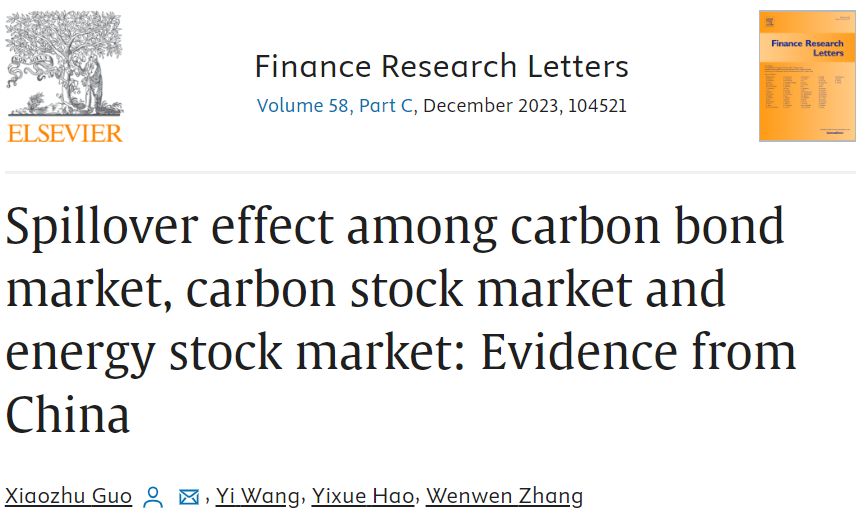 我院郭晓竹、王翊、郝以雪和张雯雯老师的论文“Spillover effect among carbon bond market, carbon stock market and energy stock market: Evidence from China”被金融领域知名SSCI期刊《Finance Research Letters》(2022-2023年度影响因子10.4,JCR一区,JCR学科类别Business/Finance中排名1/111)接受并在线发表。