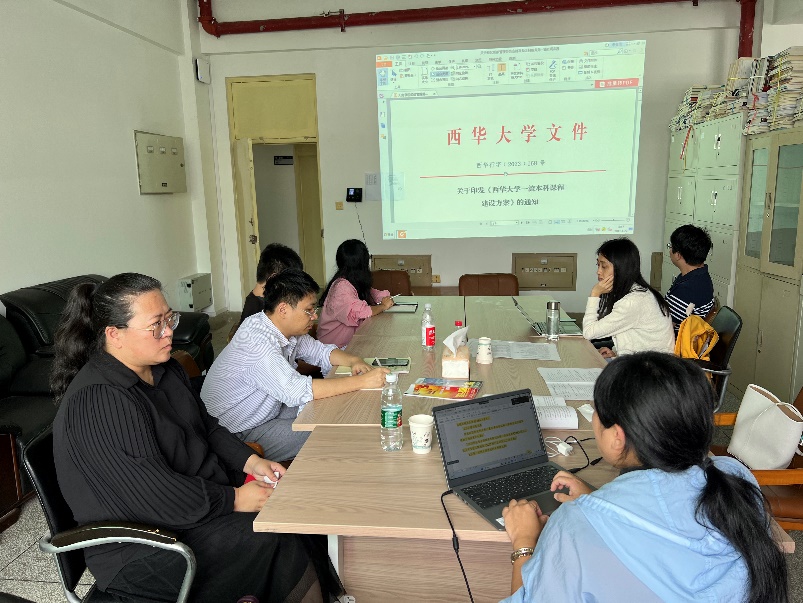 姚世斌在会议上就本科课程建设的重要性做了详细阐述,并指出一流课程建设是关系到专业发展和我系发展的重要事项,希望全系教师深刻认识到本科课程建设的重要性。姚院长在肯定我系一流课程建设方面取得成果的同时,希望全体教师以更加积极、更多的参与到课程建设中来。此外,会议进行了《西华大学全日制本科学生转专业管理办法(修订)》文件的集中学习。目的是让我系所有教师清晰学生转专业的相关要求。