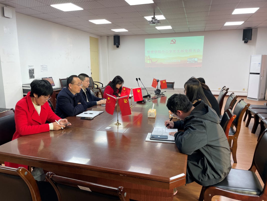 12月4日,管理学院在3E-402会议室召开党支部党员大会,讨论预备党员转正事宜。会议由党支部书记饶芳主持。