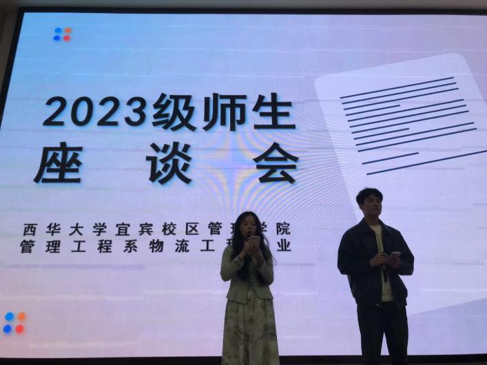 为加强物流工程专业大一新生对专业的认知。3月18日下午4点在宜宾校区的1-101报告厅召开管理学院物流工程专业师生座谈会。活动由2023级同学王禹杰和张梦瑶主持。管理工程系副主任谢寒,教师王洁、吴晓,辅导员李裕良,以及2023级物流工程专业全体学生参加活动。