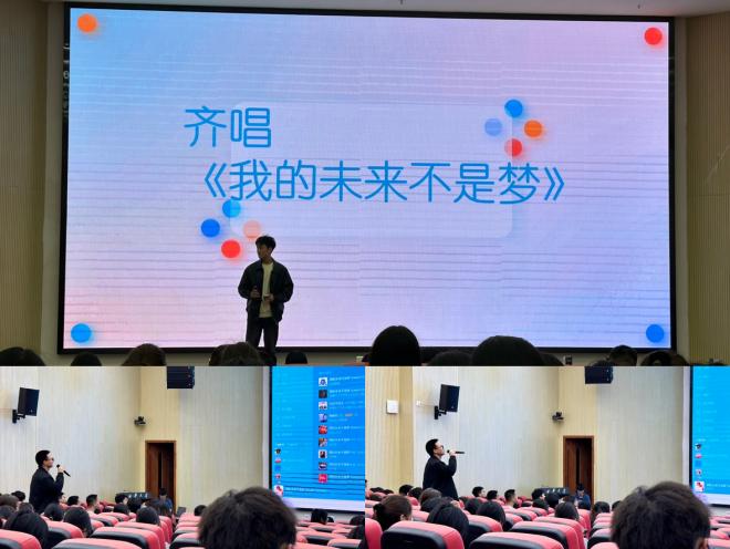 在整场活动中,同学们还策划了丰富多彩的活动。何妍冰的《wonderful you》,朱光耀的《爱的太迟》,合唱《我的未来不是梦》以及三轮抽奖活动为此次见面会增添了一抹轻松愉悦的氛围。尤其是在见面会的尾声,李裕良带领着同学们全场共同齐唱《我的未来不是梦》,营造了满满的团结和希望氛围。活动最后谢寒寄语2023级物流工程专业所有学子,希望他们能够以西华大学的校训“求是、明德、卓越”为指导,珍惜大学时光,勤于思考,勇于实践,共创美好未来。
