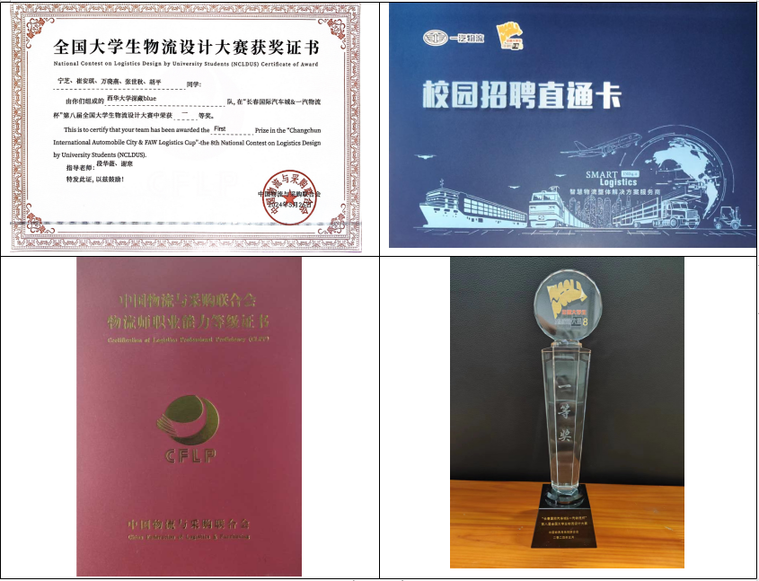 在5月26日结束的“长春国际汽车城&一汽物流杯”第八届全国大学生物流设计大赛决赛中,我校管理学院物流工程专业宁芝、崔安琪、万晓燕、张世秋、胡平五名同学组成的“西华大学深藏blue队”在段华薇教授和谢寒副教授精心指导下,以作品《数智一汽,物网链通--整车物流全流程优化方案》从全国各高校699支参赛队伍中脱颖而出,成功斩获全国一等奖,参赛队员均获得“校园招聘直通卡”和“物流师”资格证。