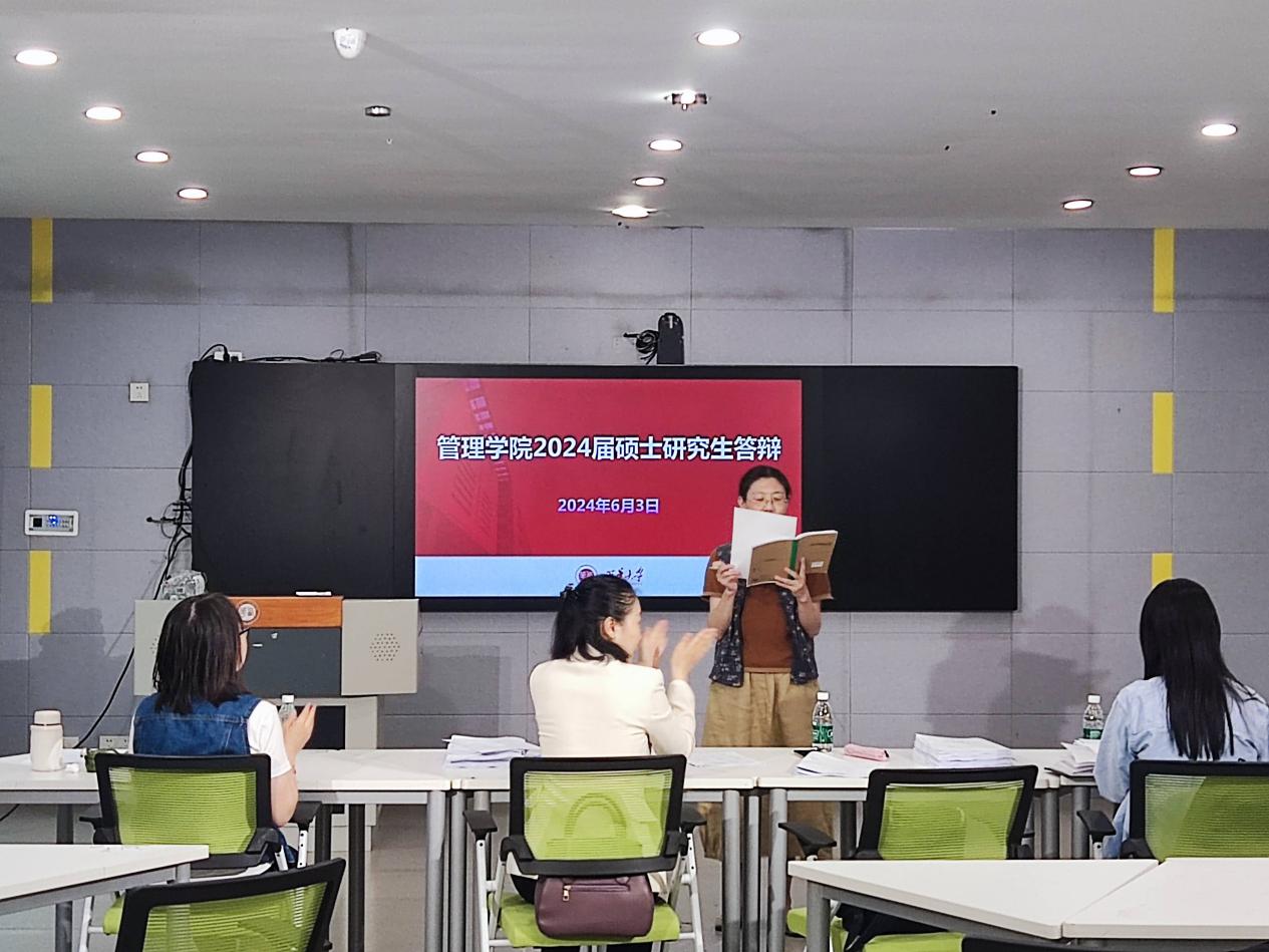 2024年6月3日上午,管理学院举行了2021级研究生(工商管理、会计、工程管理)毕业论文答辩。此次答辩分8个组,答辩专家小组由校内外专家共同组成,并邀请了四川大学、西南财经大学、西南交通大学、四川师范大学、成都理工大学等校外专家作为答辩主席,同时还特邀了行业专家作为答辩委员。