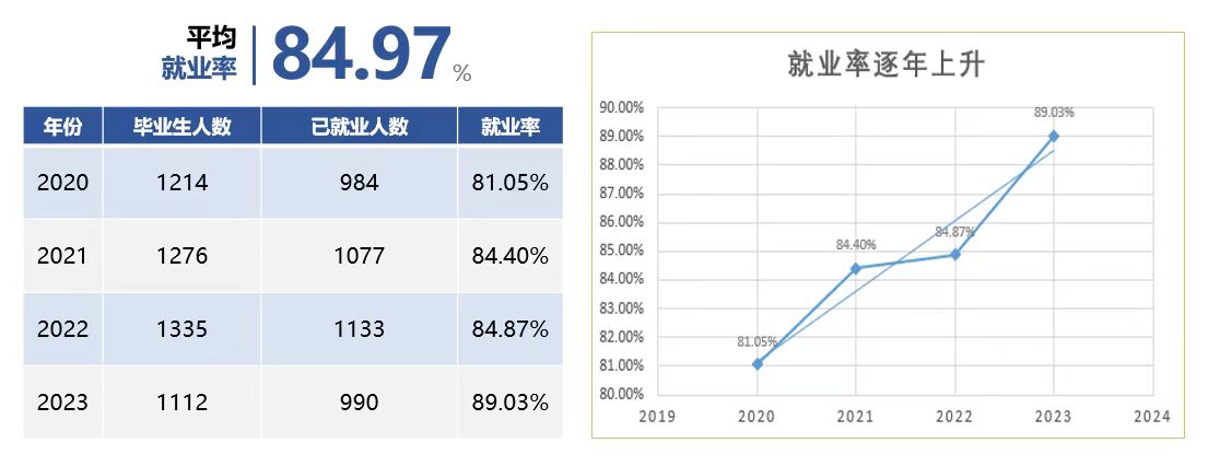 学生入口旺,出口畅,社会经济发展适应度显著提高,就业率逐年上升。