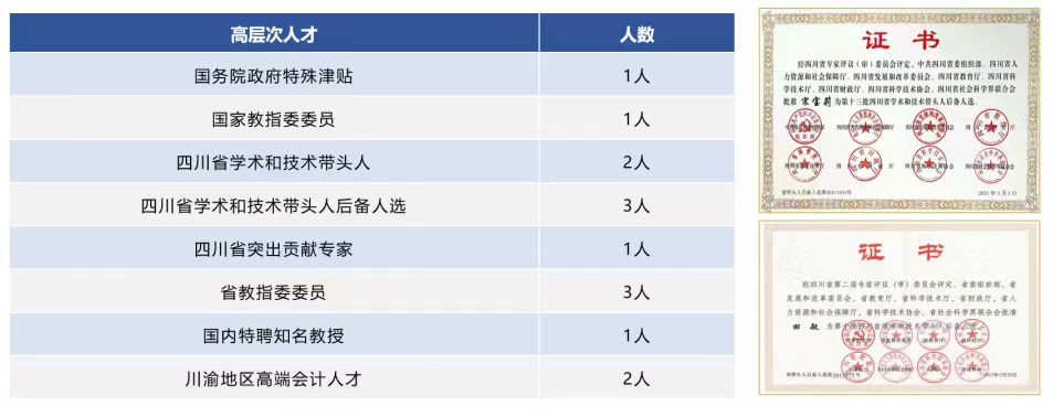 学院在职在岗教职工157人,在职在岗专职教师132人。而专任教师高级职称占比达72.73%,硕博士占比达94.70%。其中,国务院政府特殊津贴1人,国家教指委委员1人,四川省学术和技术带头人2人,四川省学术和技术带头人后备人选3人。