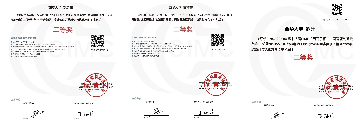 “君子队”由工业工程21级的刘浩伟和高梓宇两位同学组成,以“天行健,君子以自强不息”作为团队口号,展现了西华学子坚忍不拔、勇于探索的精神风貌。经过数月的精心准备与激烈角逐,刘浩伟与高梓宇凭借扎实的专业知识、创新的思维能力和团队协作精神,在智能制造工程设计与应用类赛项中的精益制造系统设计与优化方向(本科组)初赛阶段获得一等奖,成功晋级总决赛。