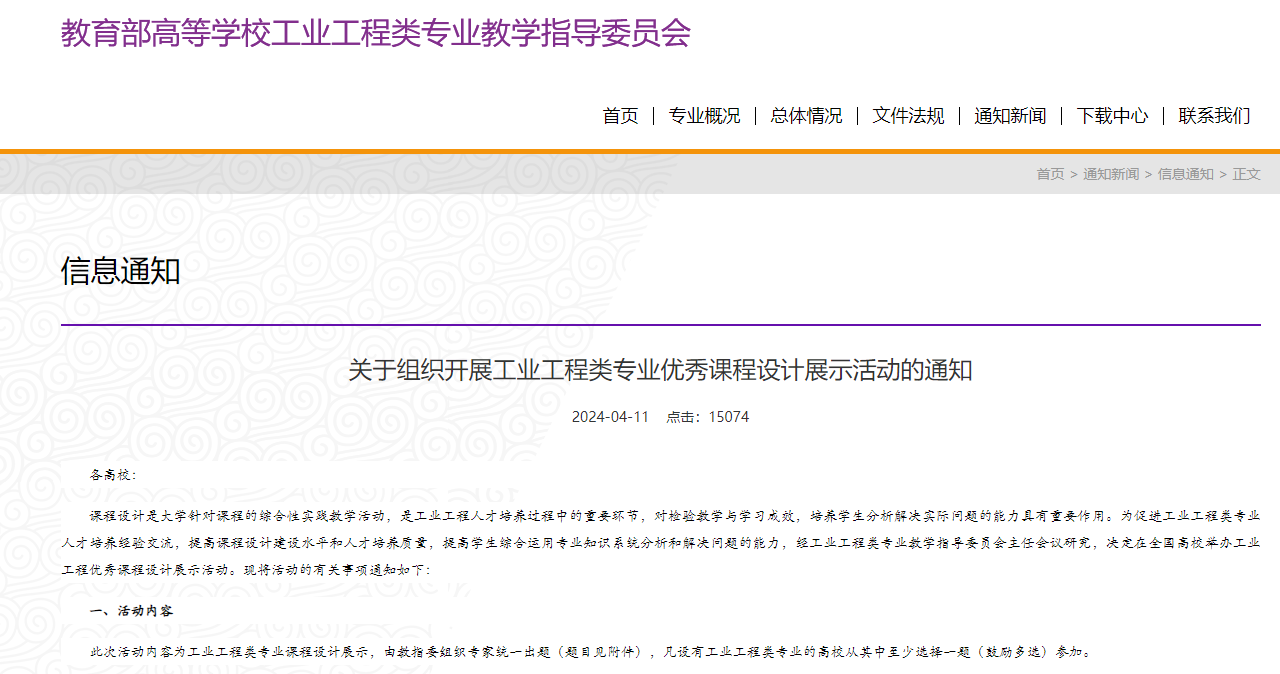 课程设计是大学针对课程的综合性实践教学活动,是专业人才培养过程中的重要环节,对检验教学与学习成效,培养学生分析解决实际问题的能力具有重要作用。本次活动由教指委组织专家统一出题,涉及的课程知识包括公共基础课、专业基础课以及专业课。课程设计能够反映专业建设水平和人才培养质量,展示学生综合运用专业知识系统分析和解决复杂工程问题的能力。