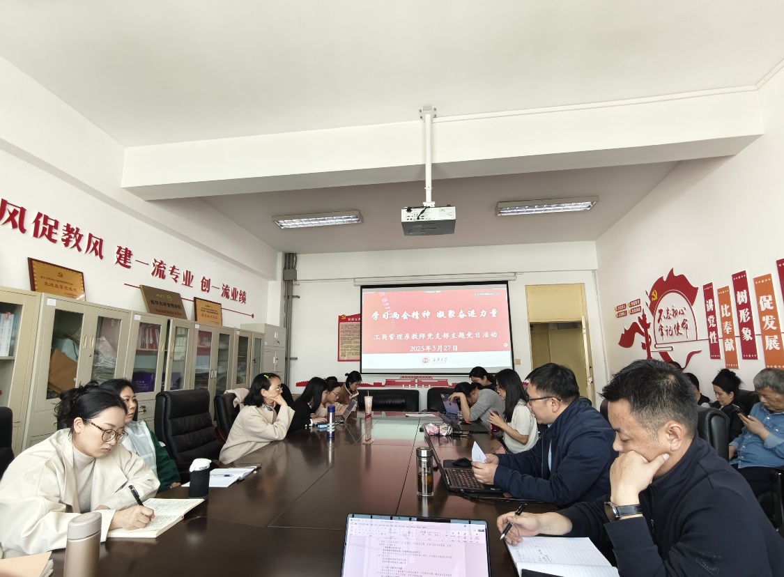 2025年3月27日,管理学院工商管理系教师党支部开展“学习两会精神 凝聚奋进力量”主题党日活动。活动通过理论学习与专业研讨相结合的方式,深入贯彻2025年全国两会精神,凝聚专业发展共识,激发教师队伍奋进动力。