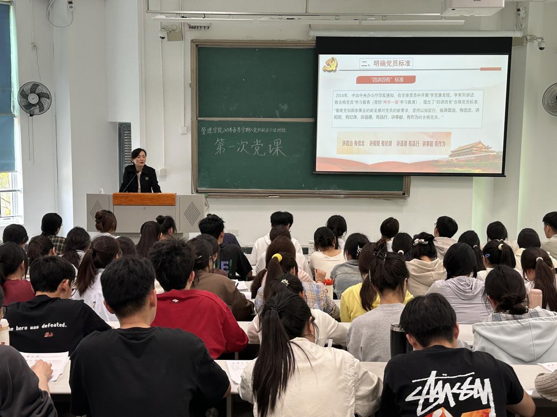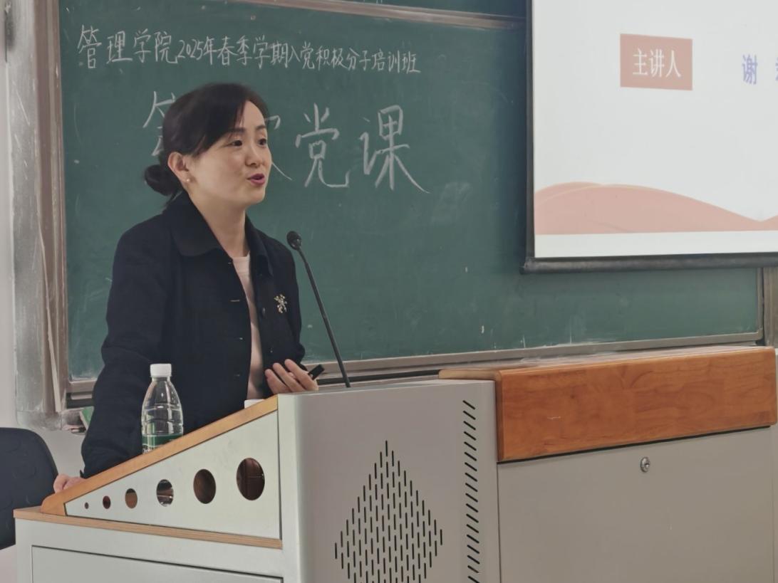 为端正入党积极分子的入党动机,提升同学们的党性修养和思想道德素养,2025410日中午,388vip太阳集团党委副书记、纪委书记谢君在4A-206教室为入党积极分子们讲授“端正入党动机、明确党员标准、以实际行动争取早日入党”专题党课。管理学院入党积极分子培训班指导教师黄婉君出席会议,管理学院2025年春季学期入党积极分子培训班全体干部及学员到场参与本次党课学习。