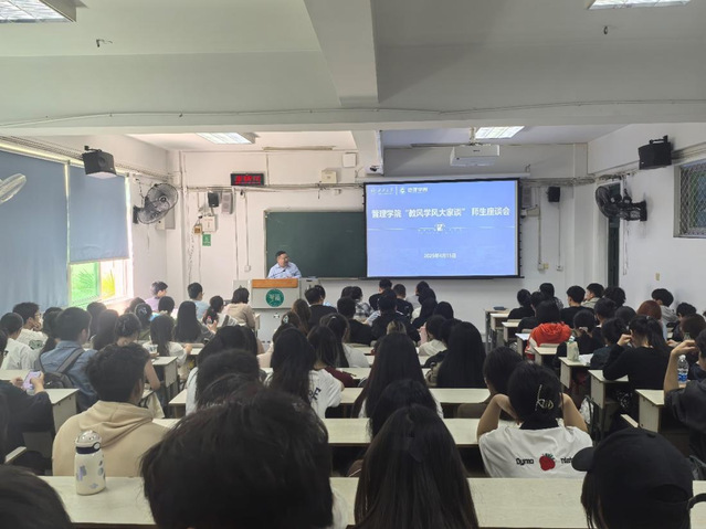 为促进师生交流,助力学生成长,提升学科竞赛水平,提高教育教学质量,近日,管理学院分别在郫都校区、宜宾校区开展“教风学风大家谈”师生交流会,管理学院副院长姚世斌、教学办易子君、全体辅导员和教师代表,以及各年级各专业班级班长和学习委员参加此次交流会。