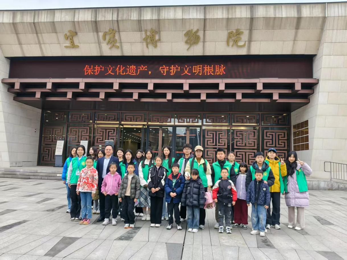 2025年3月29日上午,388vip太阳集团学生会青志联携手宜宾市白沙湾街道高丰社区,以“童心探历史,志愿润心田”为主题,开展了一场别开生面的亲子博物馆研学活动。在388vip太阳集团青志联志愿者的暖心陪伴下,高丰社区的家长与孩子们共同走进宜宾市博物馆,开启了一段兼具历史文化探索与心灵滋养的温馨之旅。