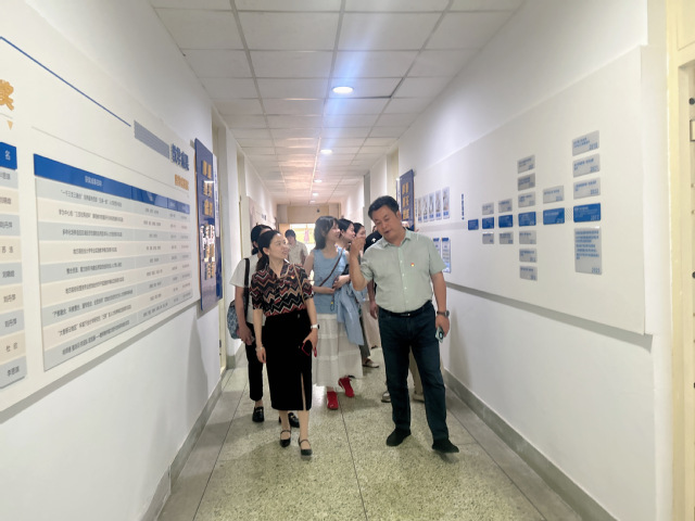在座谈会结束后,刘秀一行在肖东华的带领下,参观了学院党建工作室及文化长廊。生动的图片和文字介绍,展示了学院党委的发展和党建工作亮点,让来访者更加深入地了解了管理学院的党建工作。参观过程中,双方还就如何进一步做好党建工作进行了深入交流,共同探讨了党建工作的新思路和新方法。