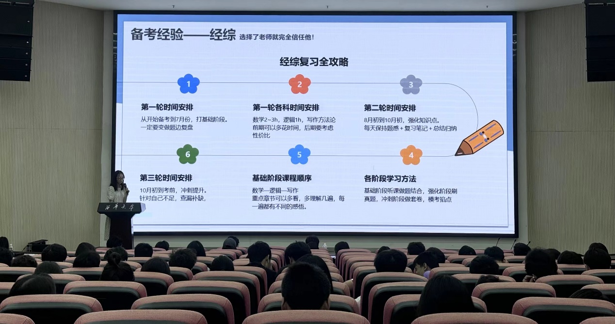 工业工程专业刘成果聚焦考研,详细讲解了目标院校选择、复习计划制定及心态调整方法。他强调合理规划时间与高效利用资源的重要性,建议借助线上课程补足短板,通过学习小组提升效率。