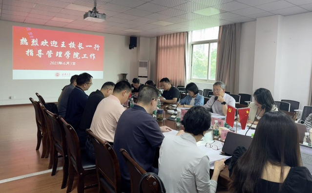 王校长充分肯定了学院“聚焦特色、分层突破”的学科建设思路和规划,详细分析了近三年管理学院的师资队伍、省部级以上项目、科研经费、省部级以上教学科研获奖、工商管理学科软科最新排名等详细情况,并对照MBA专业学位点申报条件梳理了面临的主要困难。他对学院学科建设和科研工作提出以下要求和建议:一是要锚定战略目标。将工商管理学科申博与MBA学位点建设作为“双轮驱动”,纳入学院“十五五”发展规划,引领学院高质量发展。二是要夯实学科根基。争取早日成功申报MBA专业学位点;并将工商管理学成功申博作为中期目标,做好内涵建设和对外交流,全面提升学术影响力和学科声誉,争取在第六轮学科评估中获评C。三是要开展好有组织的科研。抓好科研团队建设,优化学院期刊目录,做好项目申报规划,重点突破国家级项目和C刊论文翻两番的目标。四是要优化保障体系。结合学校制度体系优化改革,进一步优化学院绩效分配、教学科研激励办法等制度,发挥好指挥棒作用,全面调动教师积极性;发挥学科优势,做好非学历教育和培训工作,为学科建设提供经费支持。
