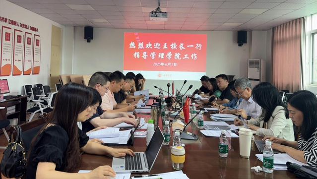 6月5日下午,党委常委、副校长王永杰教授携科技处副处长周婷等赴管理学院调研指导工作。学院领导班子、学科带头人、专业负责人及骨干教师参会。会议由赵修文院长主持,重点围绕工商管理学科建设规划、MBA专业学位点申报及科学研究等工作开展讨论。