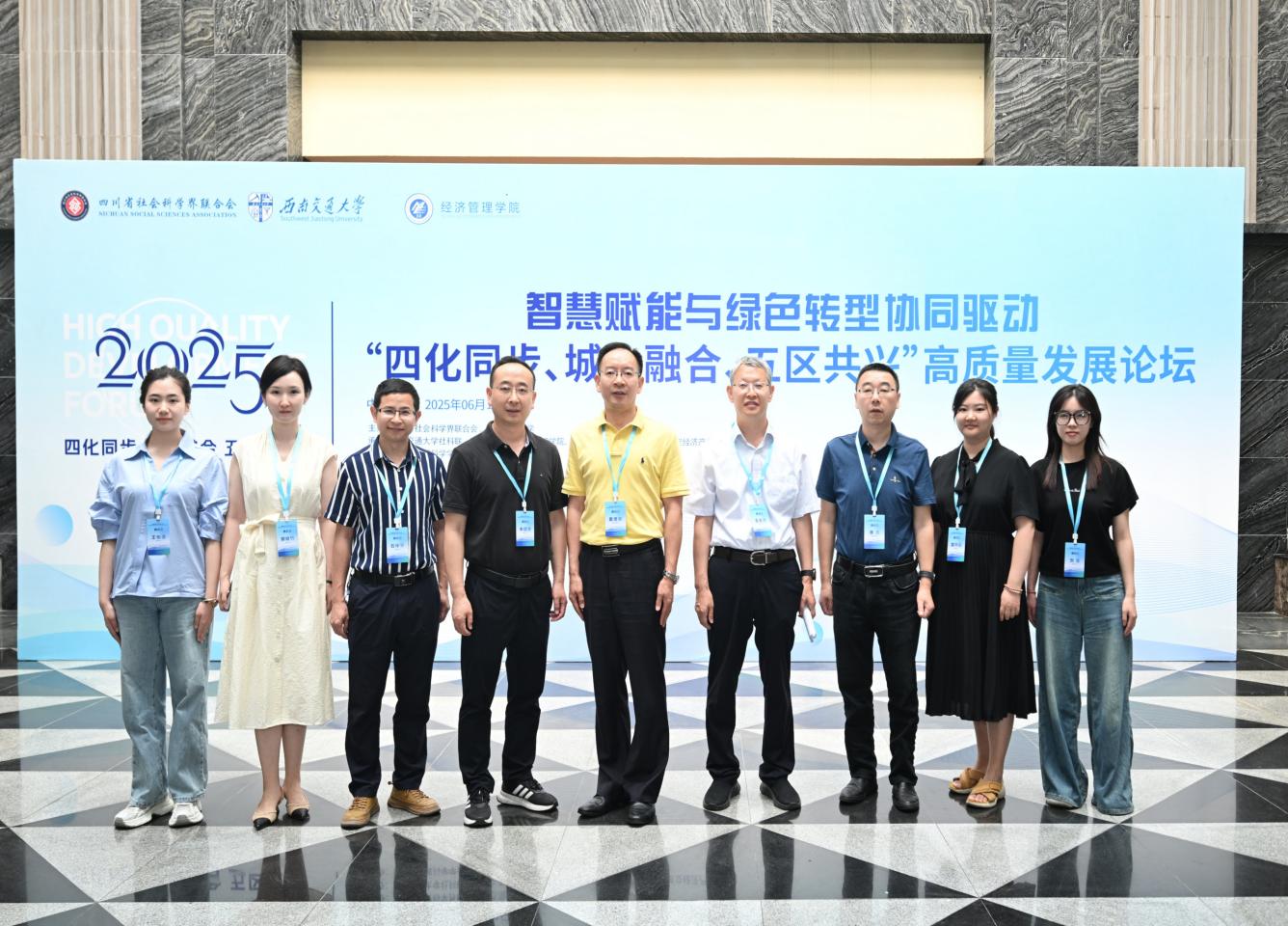 613日,由四川省社会科学界联合会与西南交通大学共同主办的“四化同步、城乡融合、五区共兴”高质量发展论坛在西南交通大学九里校区国际会议厅举行。本次论坛以“智慧赋能与绿色转型协同驱动”为主题。来自国家发改委能源研究所、省委政研室、省委党校、省经信厅、省农业农村厅、省社科院等部门和省内外科研院所、高校、各市()社科联和相关行业学会的领导、嘉宾、代表近百人参加。论坛由西南交通大学党委副书记高平平主持。我院牟绍波副院长、郭晓竹博士、廖民超博士参加了本次论坛,2024级会计硕士研究生王怡洁参会并在分论坛作报告。