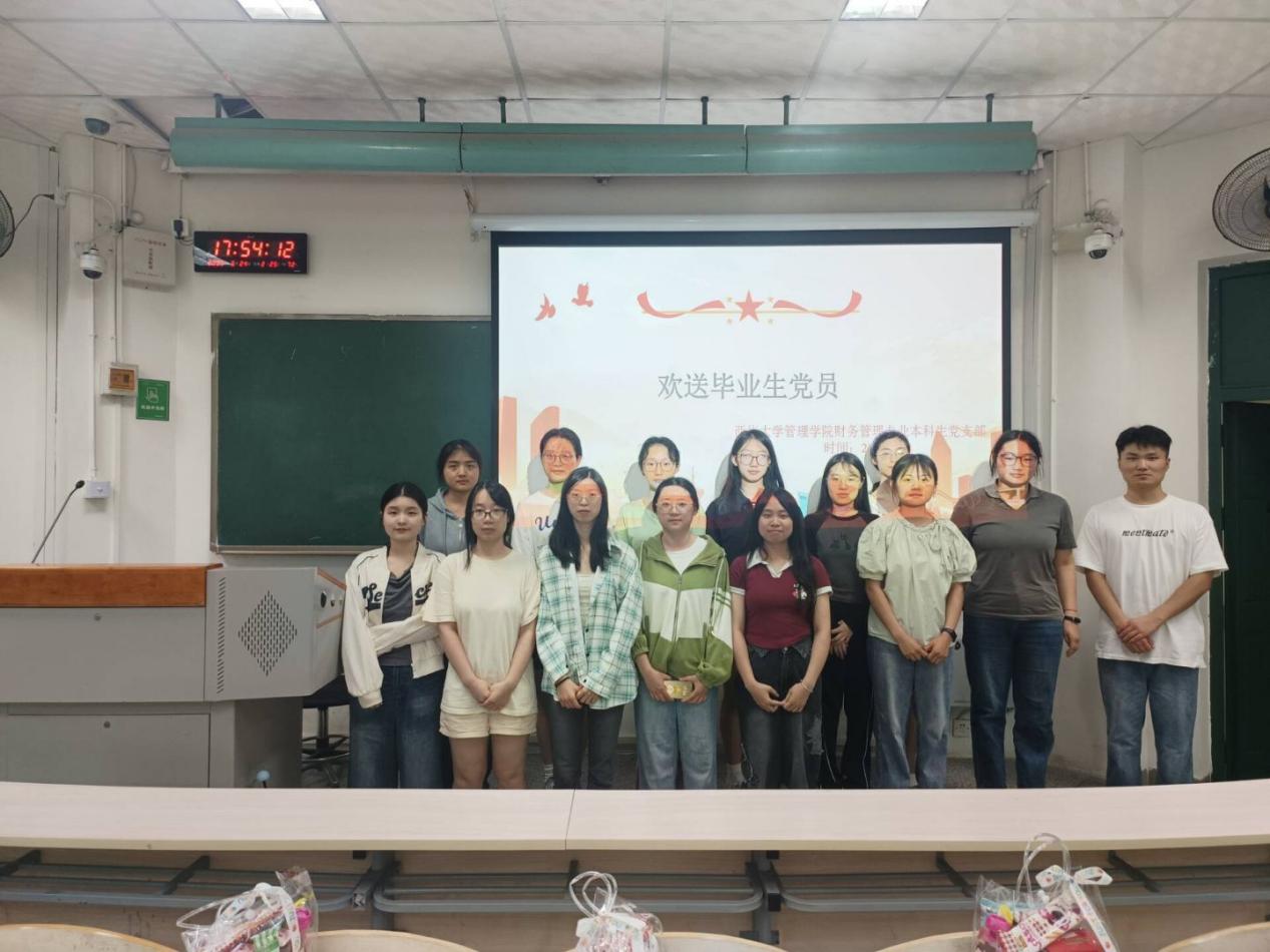 为进一步增强党组织凝聚力,激励毕业生党员在新征程中永葆党员本色,财务管理本科生党支部于6月24日在第三教学楼3B102召开毕业生党员分享会。支部全体党员齐聚一堂,以温馨而庄重的仪式,为即将踏上人生新征程的毕业生党员送上真挚祝福与殷切期望。
