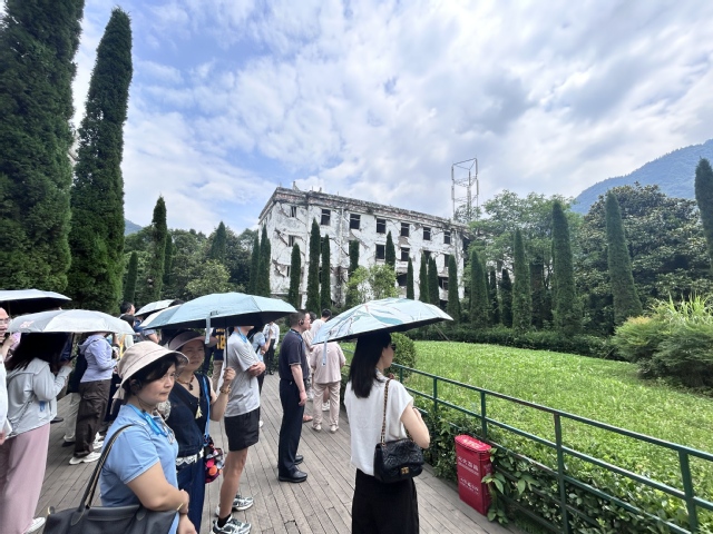 走进映秀地震遗址,断壁残垣无声诉说着那场灾难的惨烈,每一处遗迹都让党员们的心灵受到强烈震撼。在遗址现场,党员们庄严肃立,默哀致敬,向在地震中不幸遇难的同胞寄托深切哀思。随后,大家怀着沉重而崇敬的心情,缓缓绕行遗址一周,近距离感受灾难的无情,也深刻体会到生命的脆弱与珍贵。