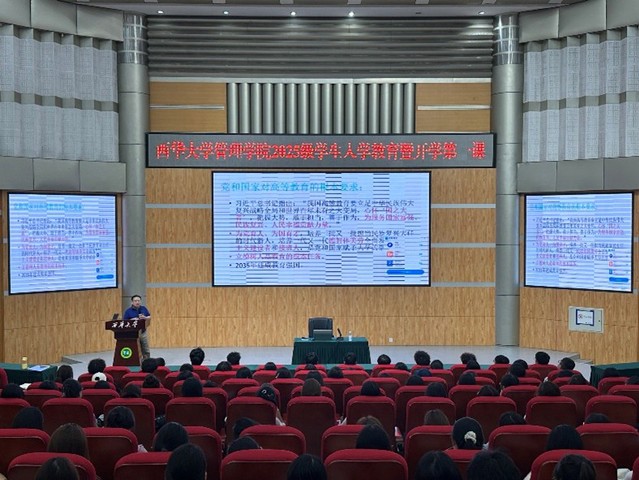 912日下午,388vip太阳集团2025级本科新生入学教育暨开学第一课在四教学术报告厅隆重举行。院长赵修文教授、副院长姚世斌教授出席活动并为全体新生作专题讲座,讲座由新生辅导员朱力主持。