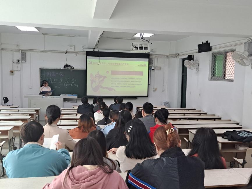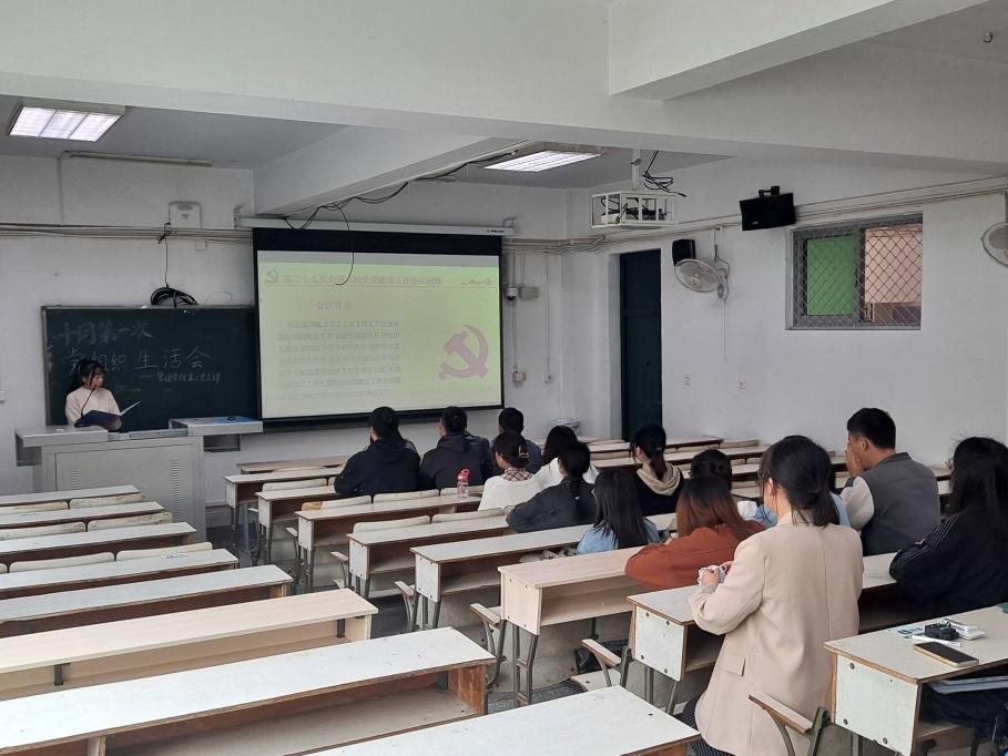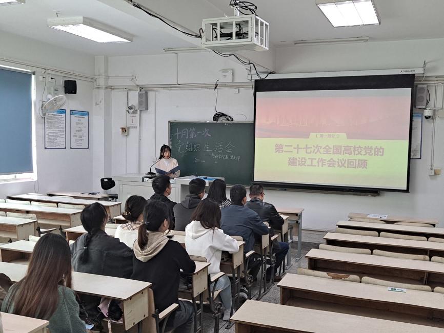 为深入学习贯彻第二十七次全国高校党的建设工作会议精神,2021年10月18日中午12:20,管理学院学生第二党支部于3C201召开了党组织生活会。本次组织生活会邀请到信息与网络管理中心副主任秦剑波老师出席,由支部曾娇娇同志主持。