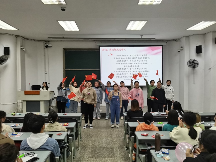 本次活动分小组展示和游戏竞赛两部分,在主持人的热情开场后,学员们期待已久的汇报表演正式开始。国乃家之因,家乃国之果;爱国先爱家,爱国如爱家,一首《国家2020》让我们感受到大家对祖国的深深眷恋;从嘉兴南湖的粼粼波光,到盛世中国的繁荣富强,《大中国》的歌声带我们领略了中国共产党领导人民创造的东方奇迹;《我们都是追梦人》将学员们斗志昂扬的精神面貌展现的淋漓尽致,大家都是新时代勇往直前的追梦者!穿透有力的歌声,回荡在教室上方;熟悉动人的旋律,奏响时代的乐章!各组的精彩表演引起掌声连连,学员们在娱乐的同时,更加感受到党之伟大、国之强大。表演结束后,接唱游戏“歌词飞花令”让学员们的热情达到高潮。经过激烈的竞演和游戏角逐,比赛结果也最终落定,主持人根据汇总票数宣布了活动的前三名,党校干部为他们颁发奖品。最后,在学员们的欢声笑语中,本次汇报演出圆满结束。