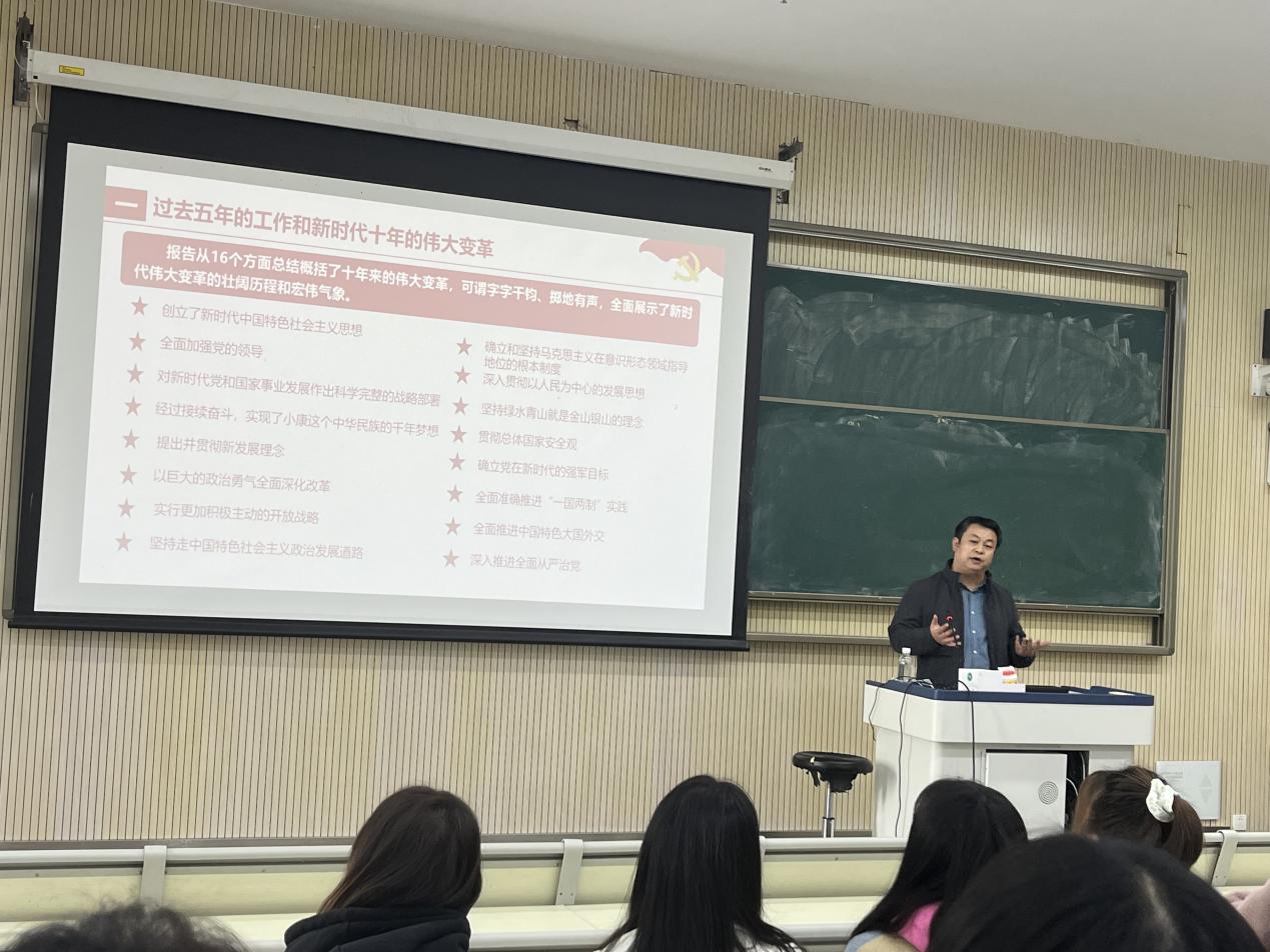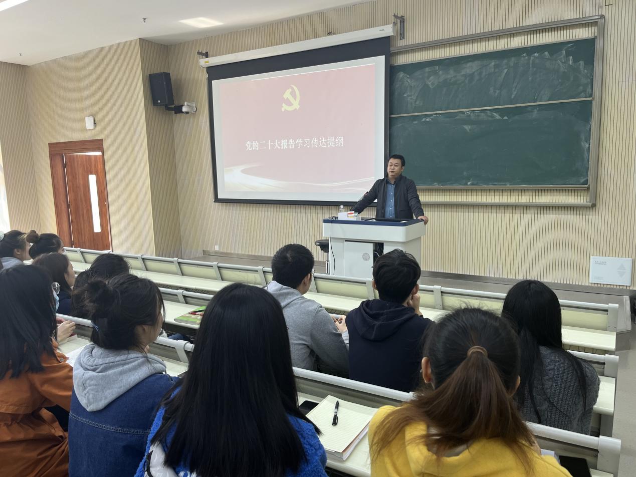 为深入学习宣传贯彻党的二十大精神,把广大学生党员的思想统一到党的二十大精神上来,11月17日上午,管理学院党委书记肖东华赴宜宾校区宣讲党的二十大精神。
