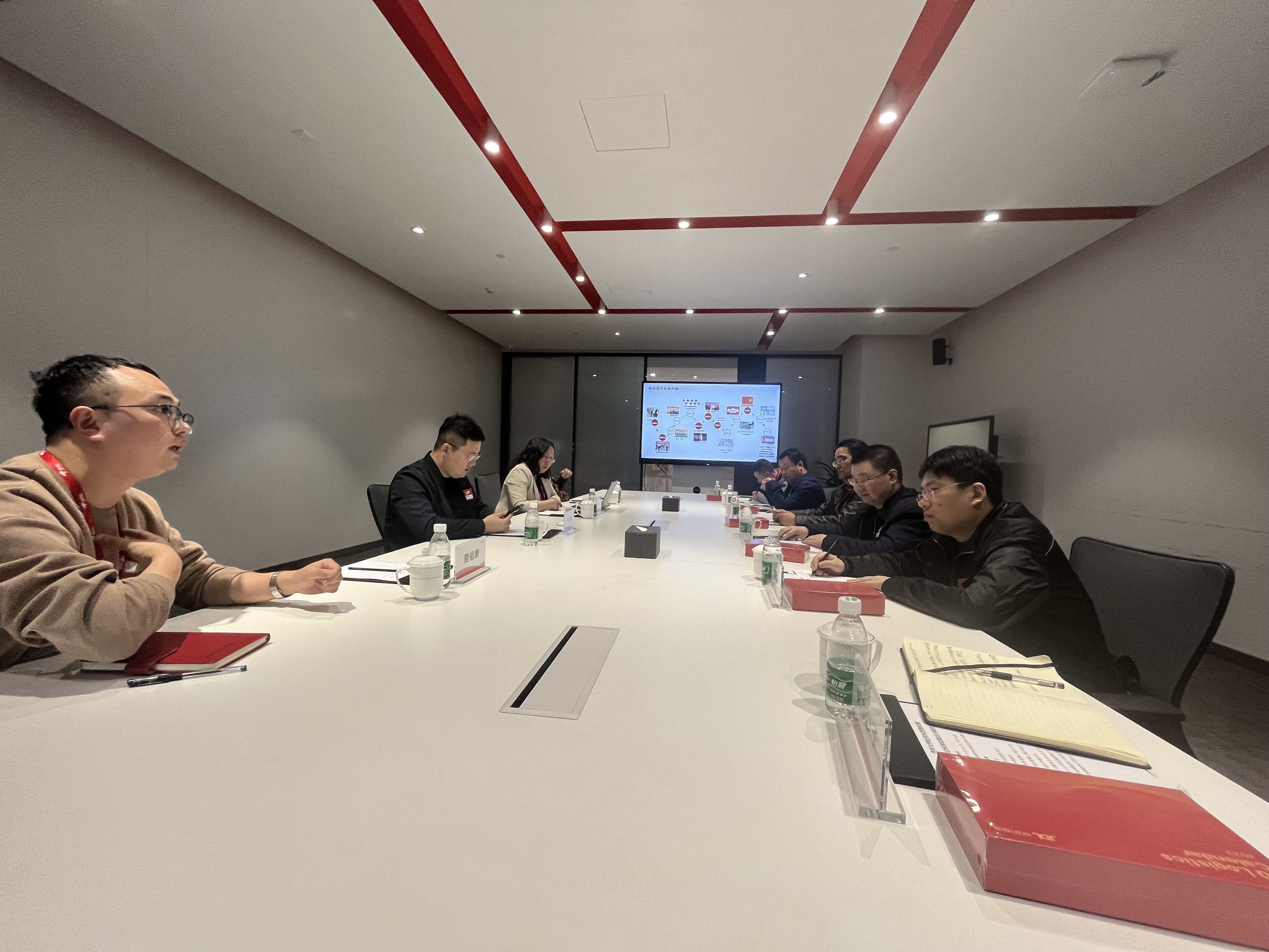 座谈会前,全体参会人员在京东西南分公司教育业务大区负责人张锦可的陪同下,参观了京东西南总部的办公环境、党建室、职工餐厅和仓储运行实时监控情况。