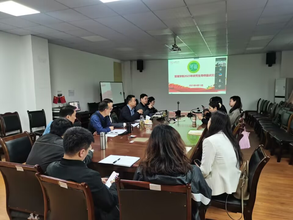 2023年4月13日,我院召开了研究生导师座谈会,共商管理学院研究生教育改革发展。会议由学院分管研究生工作的副院长牟绍波主持,党委书记肖东华、院长赵修文、研究生导师以及相关工作人员参加了会议。本次会议以线下及腾讯会议相结合的形式展开。