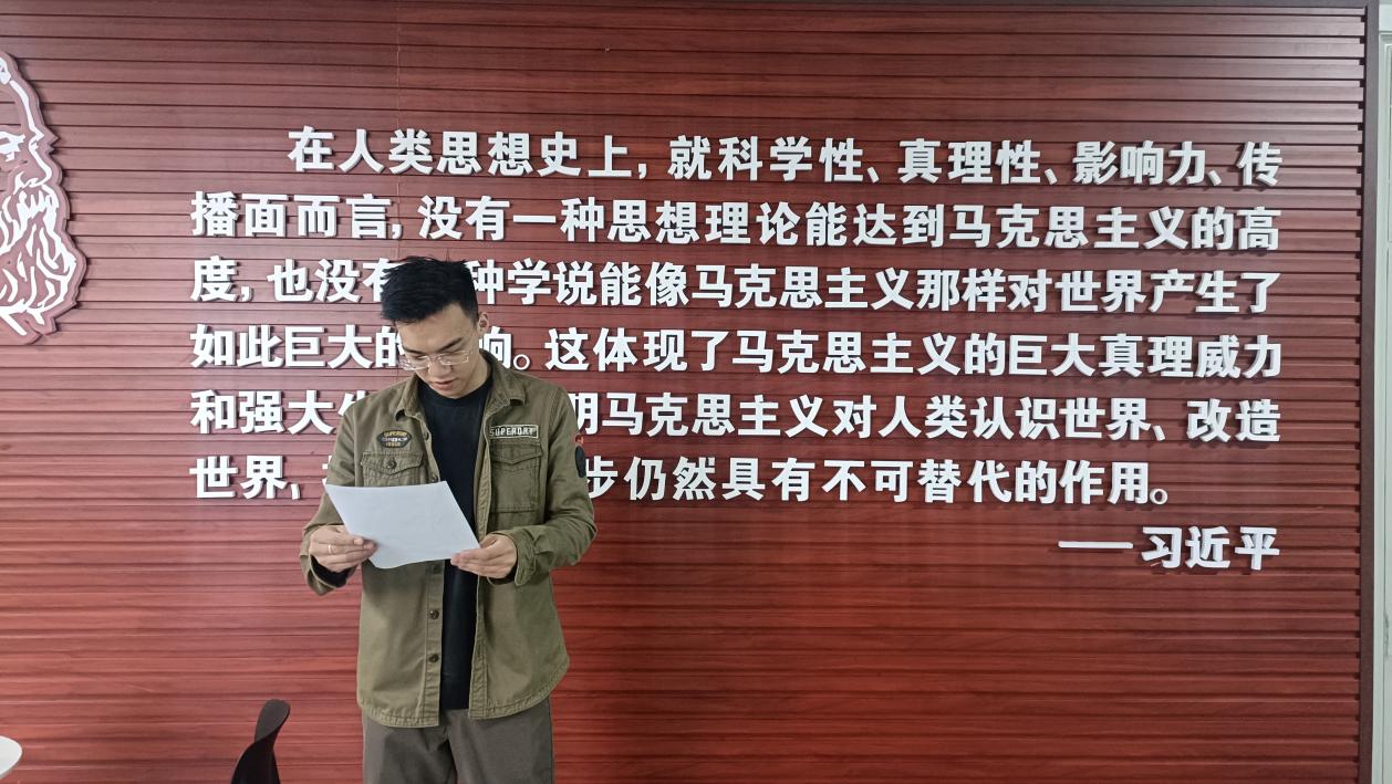 二是诵读分享。支部部分党员采取诵读的方式分享自己的学习心得,严浩澜同志说:站在新的历史节点上,只有把握好六个坚持才能在当今世界百年未有之大变局加速演进的环境下推动实现中国式现代化,作为大学生党员,也应当把六个坚持融入到科研和学习中来,坚持自信自立,坚持守正创新,坚持胸怀天下。