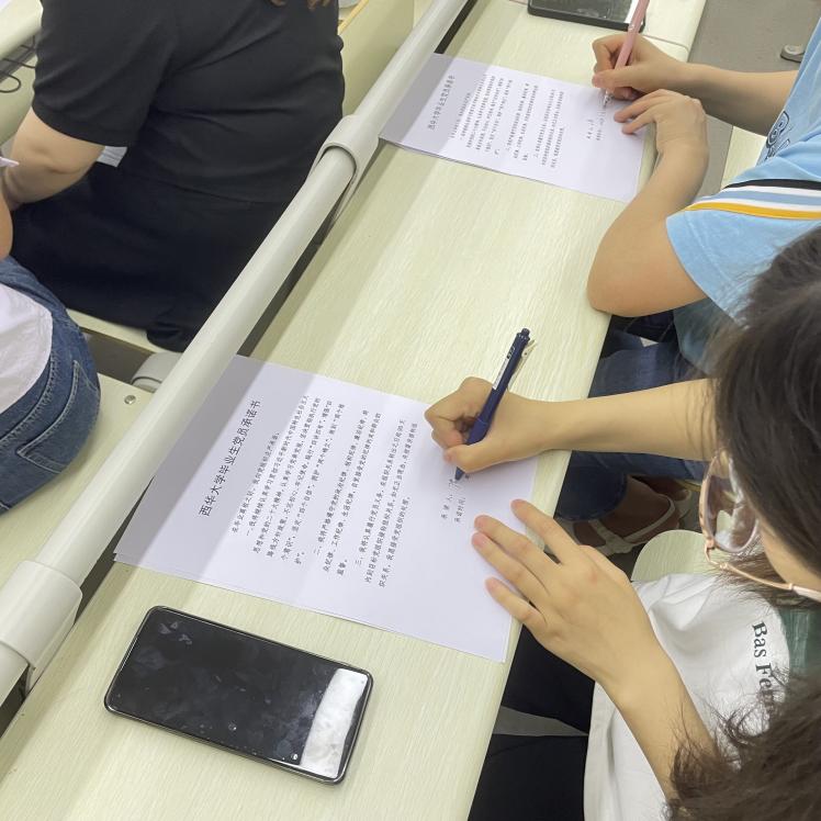 会议开始前,全体党员先进行了《西华大学毕业生党员承诺书》的签字盖章,承诺做到离校不离党。无论身在何处,党员同志都应继续认真学习贯彻习近平新时代中国特色社会主义思想和党的二十大精神,不忘初心、牢记使命,严格遵守党的纪律,认真履行党员义务。