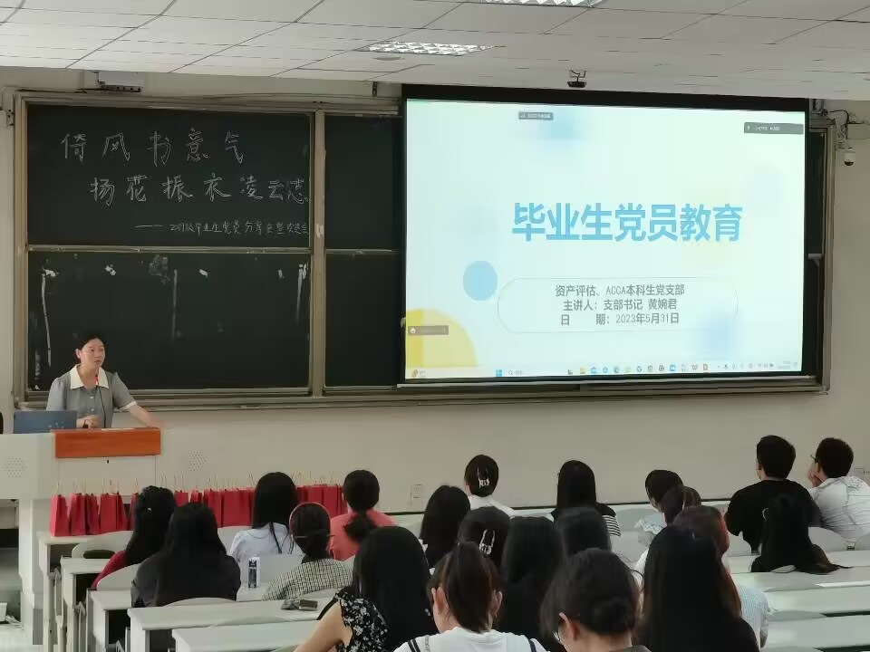 临近毕业,为进一步加强支部建设,学习和发扬优秀毕业生党员的优良作风,引导党员做好职业规划,2023年5月31日中午12:20,388vip太阳集团资产评估、ACCA本科生党支部在4A-104召开了主题为“倚风书意气,扬花振衣凌云志”的2019级毕业生党员经验分享会暨欢送会。本次活动采取线上线下相结合的方式开展,参会人员有本支部党员同志以及低年级党员。