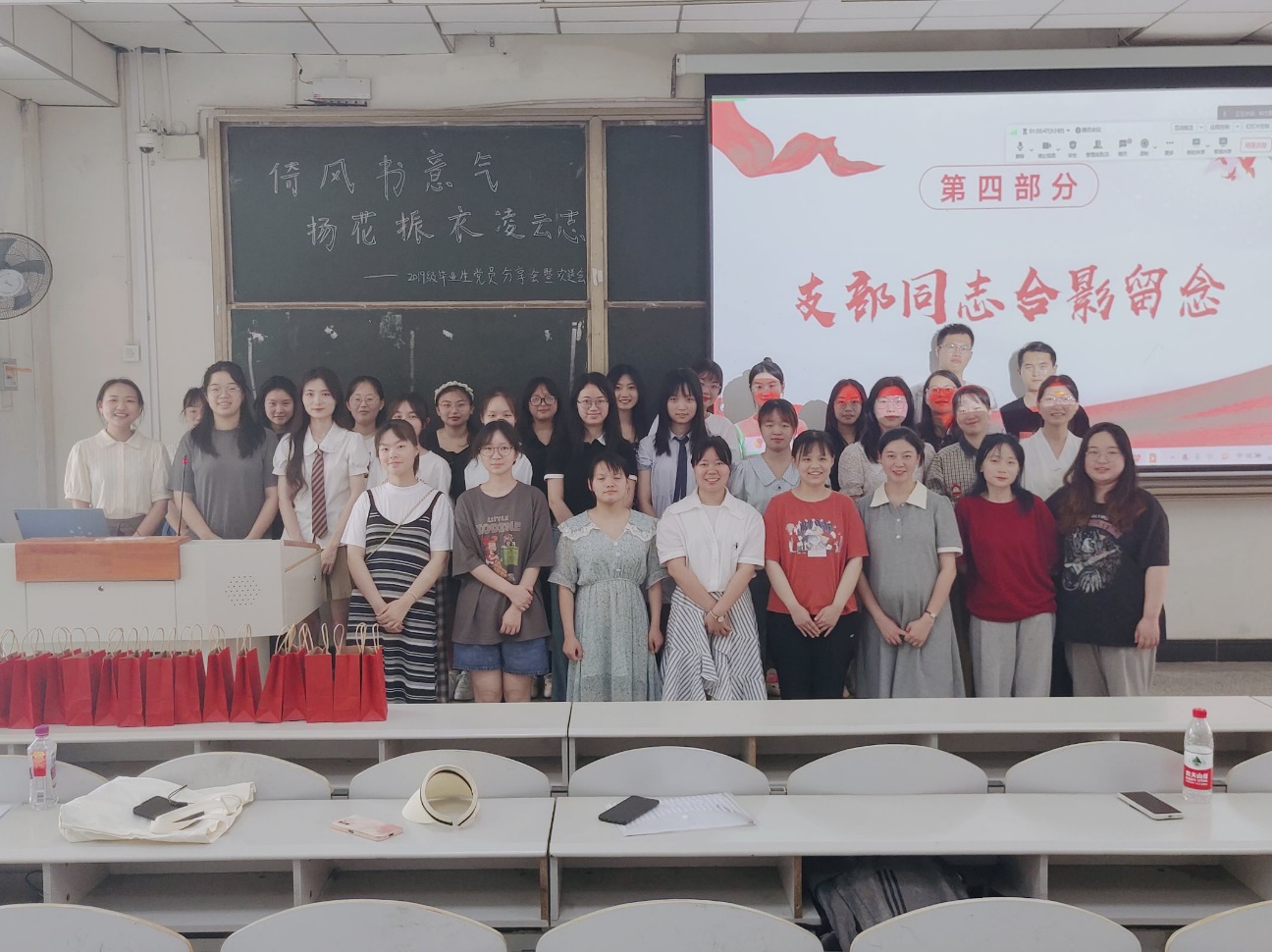 大会的最后进行了毕业生党员毕业礼物的发放以及集体合影,希望他们今后不论身处何方,都要永葆初心,继续发扬党支部的优秀精神,在未来的路上能继续不畏困苦,奋勇前行!