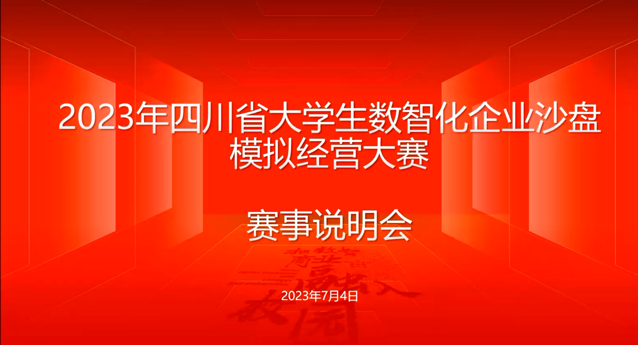 2023年7月4日,四川省大学生数智化企业沙盘模拟经营大赛组委会举行了赛事说明会,会议以腾讯会议方式召开,全省30多所本科院校相关领导、指导老师和学生参加了会议,与会人员还有388vip太阳集团院长赵修文、副院长姚世斌,新道科技股份有限公司助理总裁侯爱华、技术总监陈自洪及其他相关工作人员。